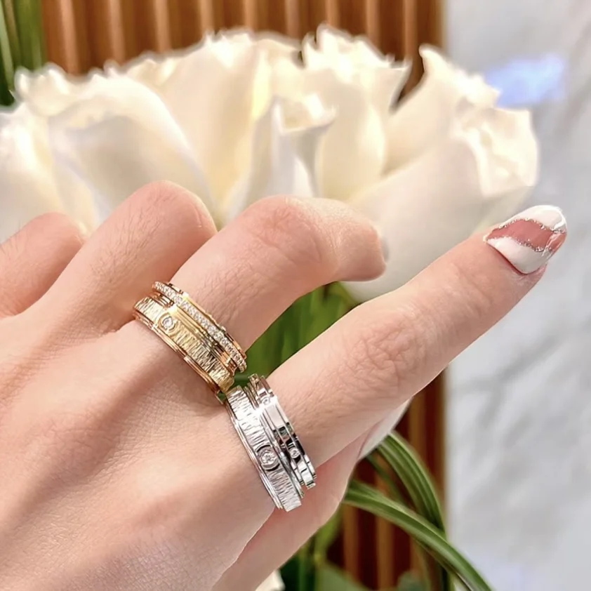 Eleganter, drehbarer Partnerring aus 925 Sterling Silber mit edler 18 K Vergoldung und funkelndem Einzelstein. Stilvolles, modernes Design – ideal für Paare, Verlobung, Jahrestage oder als symbolisches Geschenk der Verbundenheit.